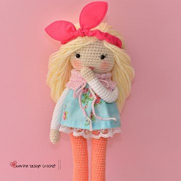 Materials Yarn YarnArt JEANS (50gr – 160m)(color No05, No61, No62) Yarn BBB Filaty Cotton Baby Soft (50gr – 179m)(color No03) Yarn acrylic for hair Safety eyes of black color – 5 mm Crochet hook – 2,0 mm Lace for…