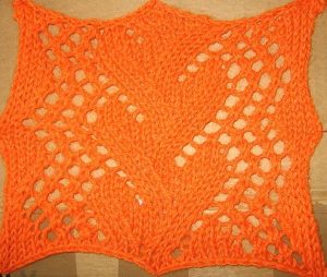 9th row: k5,* (yo, k2tog) twice, yo, k2, slip 1, k1, psso, k2, k2tog, k2, yo, k3, and repeat from *. For the end: (yo, k2tog) 3 times, k3.