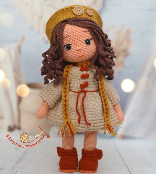 - f/o-long tail for sewing & attach Hair 15 rows up from the eyes