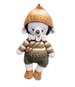 Place the eyes between rows 13 and 14, with a distance between them of 6 sc. Stuff the head. Embroider the nose between rows 15 and 16.