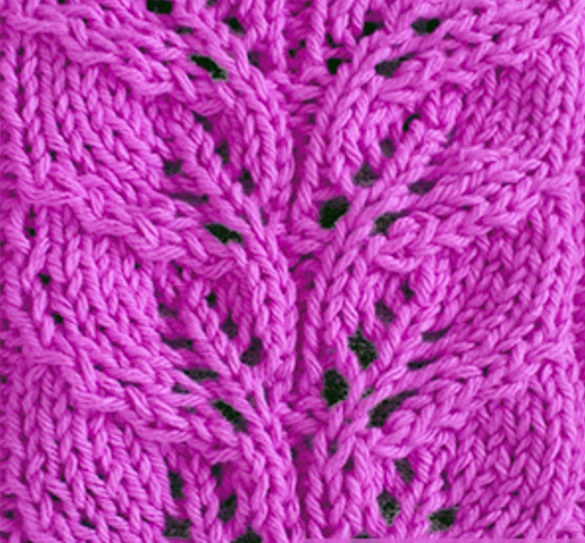 Row 4: P2, * K4, K3tog, K1, Yo K1, Yo, K1, P2, K1, Yo, K1, Yo, K1, SK2P, K4, P2; rep from * to end.